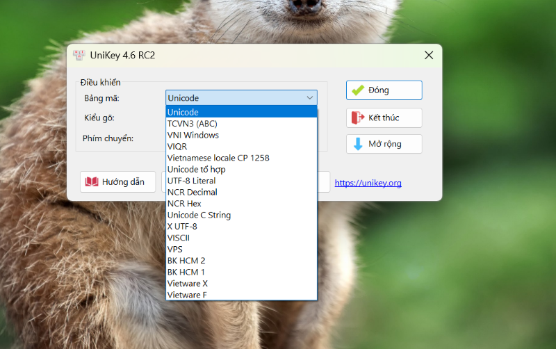 Mở cấu hình Unikey (Ctrl + Shift + F5), tab "Bảng mã" chọn "Unicode" – phổ biến nhất cho hầu hết ứng dụng hiện đại.