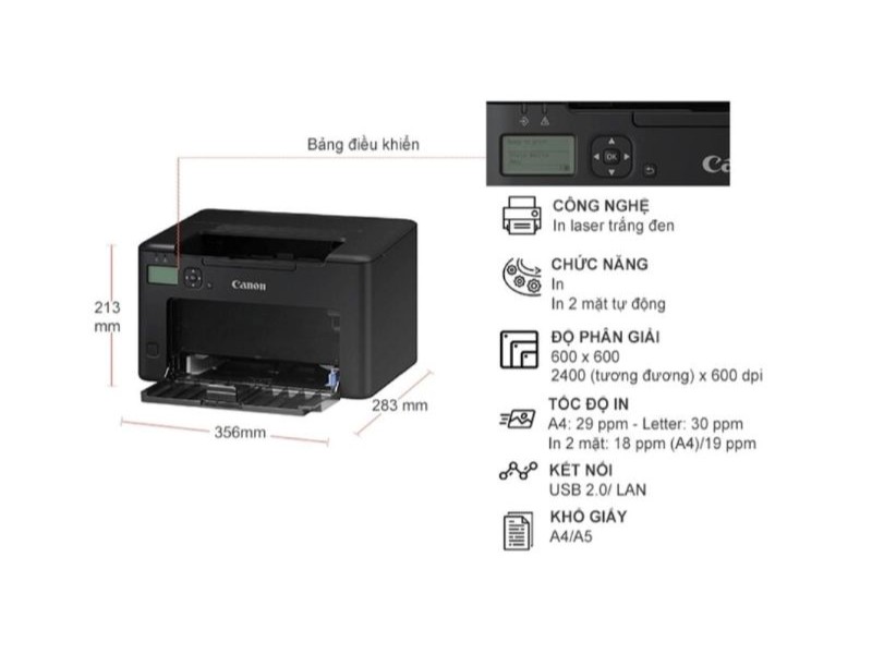 Việc hỗ trợ cả ba phương thức kết nối (USB, LAN, Wi-Fi) giúp Canon LBP122DW thích ứng linh hoạt với nhiều cấu hình mạng khác nhau, từ văn phòng nhỏ chỉ có vài máy tính đến doanh nghiệp có hàng chục nhân viên sử dụng đồng thời.